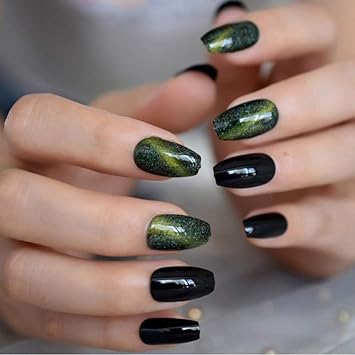 Rpbll Sarg Medium Glitter Nagel Kohle Schwarz Silber Pulver Translucent Shiny Fake Nails Vorgefertigte Fashion Style Fingernagel L5108 Amazon De Beauty