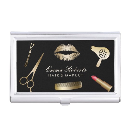 Makeup Artist Hair Stylist Black Gold Beauty Salon Visitenkarten Dose Zazzle De