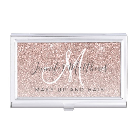 Trendy Rose Gold Glitzer Makeup Artist Hair Salon Visitenkarten Dose Zazzle De