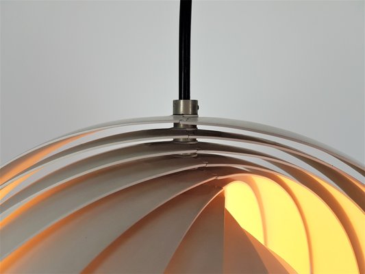 Verner Panton Moon pendant lamp 1960 design Adjustable white aluminium slats globe lampshade Made in the 60s by Louis Poulsen, Denmark E27 socket.