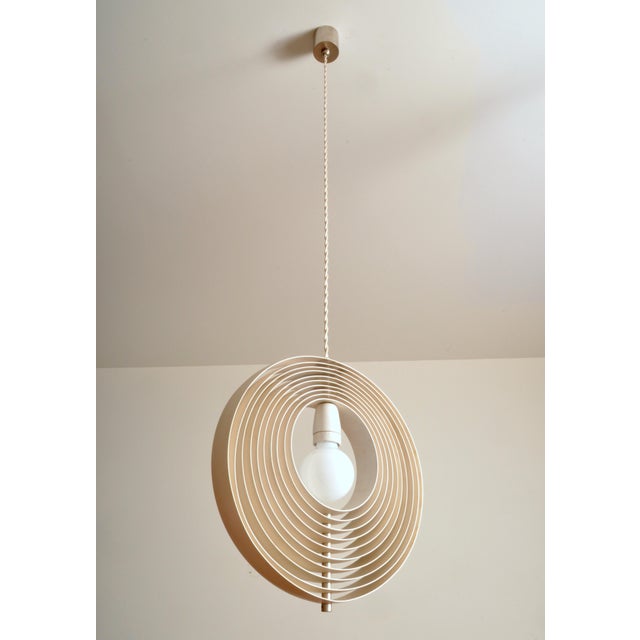 Plastic, metal Denmark, 1960s Design Verner Panton () – Danish architect and designer, 1960Manufacture Louis Poulsen, Denmark Shade made of 10 movable, white lamellas, inspired by the moon phases Onelight fixture, electrified (with fabric cable) Diameter 36 cmVery good condition The Moon Lamp from 1960 is one of the most famous and successful designs by the Danish designer. Verner Panton became famous for the creation of lamps such as Moon Lamp (1960), Panthella (1971, edited by Louis Poulsen) and Pantop (1980, edited by Verpan) Nowadays, most of his creations are edited by Vitra who dedicated him a retrospective in 00 in Vitra Design Museum in Germany. Verner Panton Moon Pendant Large Online at AndLightcom Fast and free shipping, easy to return and good customer service Order now!.
