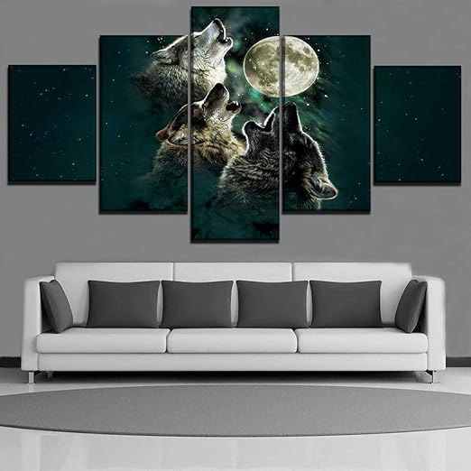 37tdfc 5 Teilig Leinwandbilder Bild Auf Leinwand Bilder Kunstdruck Modern Wanddeko Wand Wandbilder Xxl Wohnzimmer Schlafzimmer Wanddekoration Deko Design Wand Bild Mondnacht Tier Wolf Bild Amazon De Kuche Haushalt