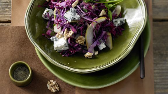 Rohkost Salate sind total leckere und in diesem Rotkohlsalat mit Orangen und Walnüssen stecken viele Vitamine die wir in der kalten Jahreszeit gut gebrauchen können Ihr müsst ihn unbedingt probieren Knackig, sehr gesund und ein echter Farbklecks. Rotkohl mit 1 TL Zucker, 2 EL Apfelessig und 1 Prise Salz marinieren Walnüsse in einer Pfanne auf mittlerer Stufe ca 5 Min fettfrei rösten Orange oben und unten abschneiden und die Schale ringsherum abschneiden Orangenfilets heraustrennen Dafür mit einem kleinen Messer die Orangenstücke zwischen den weißen Teilen herausschneiden. RotkohlBirnenSalat mit Walnüssen 46 (358 ratings) Sign up for free Difficulty easy Preparation time 10min Total time 10min Serving size 6 Portionen Difficulty Most of our recipes are easy Those that require a little more time or cooking skills are rated medium or advanced.