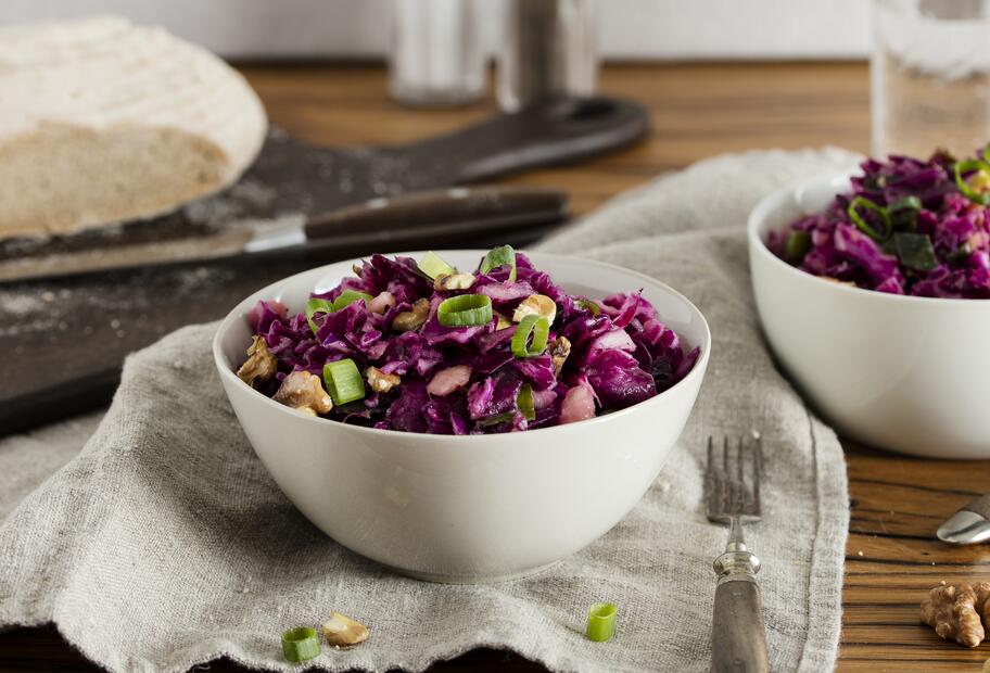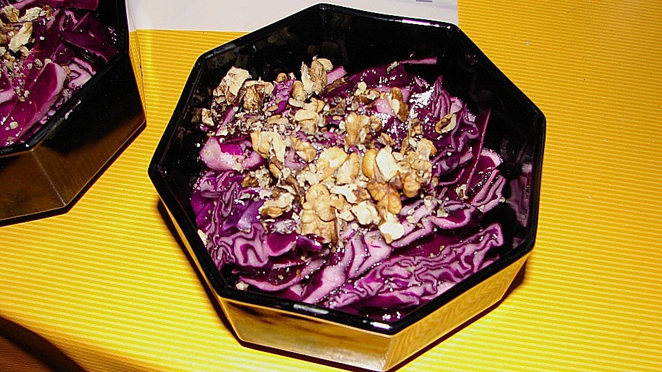 Rezept Rotkohlsalat mit Apfel und Walnuss Leckerer veganer Rohkostsalat aus RotkohlWintergemüse, Thermomix Rezept. Im der dunklen Jahreszeit empfinden wir warme Speisen oft angenehmer als kalte Eine ausgefallene SalatKreation ist unser lauwarmer Rotkohlsalat mit Walnüssen und Granatapfel Eine wahre Mineralstoff und Vitaminbombe!. Rotkohlsalat mit Orange und Walnüssen – Knackige Herbstvitamine • Mit grob gehackten Walnüssen erst kurz vor dem Servieren bestreuen Convenience • Krautsalat hält gut verschlossen 5 bis 7 e im Kühlschrank • Walnüsse dann immer erst vor dem Servieren frisch gehackt dazugeben.