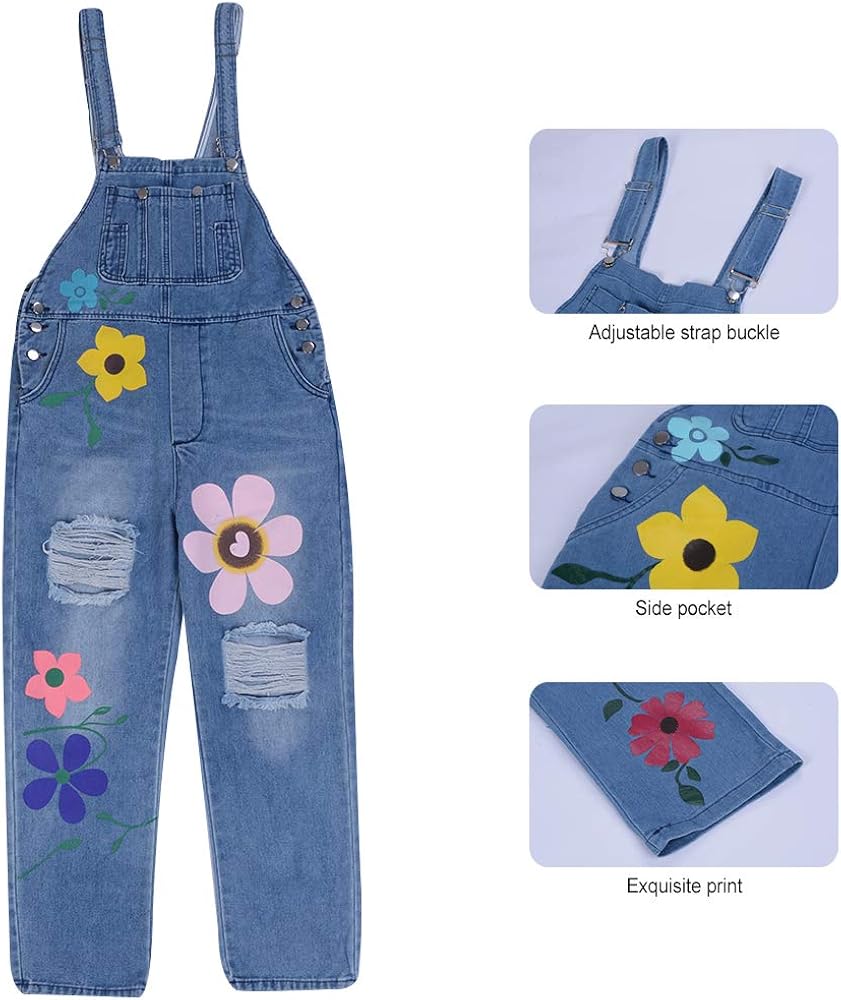 Jodimitty Damen Latzjeans Weites Bein Grosse Grossen Denim Latzhose Overalls Strampler Jeans Boyfriend Destoryed Zerrissene Loose Fit Jumpsuits Baggy Hosen Blumen Drucken Damen Latzhosen
