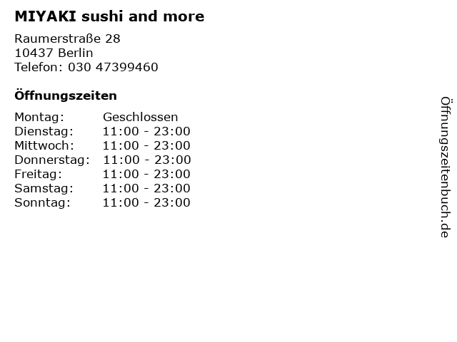 ᐅ Offnungszeiten Miyaki Sushi Lounge Raumerstr 29 In Berlin
