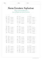 Kleines Einmaleins Kopfrechnen Kostenlose Arbeitsb