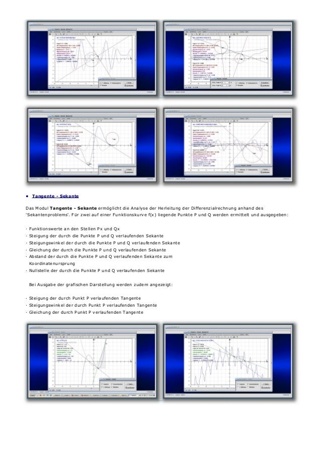 Tangente Definition Eine Tangente ist eine Gerade, die eine Funktionskurve in einem bestimmten Punkt (zB der Punkt (1, 1) im Koordinatensystem) berührt (nicht schneidet) Die Tangente hat dieselbe Steigung wie die Kurve (und das ist nützlich, da man so die Steigung bzw die Änderungsrate einer nichtlinearen Funktion in einem Punkt bestimmen oder umgekehrt die Tangente berechnen kann). RE Steigungswinkel einer Tangente Nimm an, die Kurve habe in der Naehe von eine explizite Darstellung , also Rechne aus Das ergibt eine Formel fuer , 15 riwe Auf diesen Beitrag antworten » RE Steigungswinkel einer Tangente wie wäre es mit impliziter Differentiation , 30 Leopold Auf diesen Beitrag. Der Steigungswinkel einer Funktion Der Steigungswinkel einer Funktion an einer gegebenen Stelle ist der Steigungswinkel der Tangente an dem Graphen an dieser Stelle Um den Steigungswinkel zu berechnen, benötigst du nicht die Tangentengleichung Es genügt die Steigung der Tangente, also die Ableitung der Funktion an dieser Stelle.