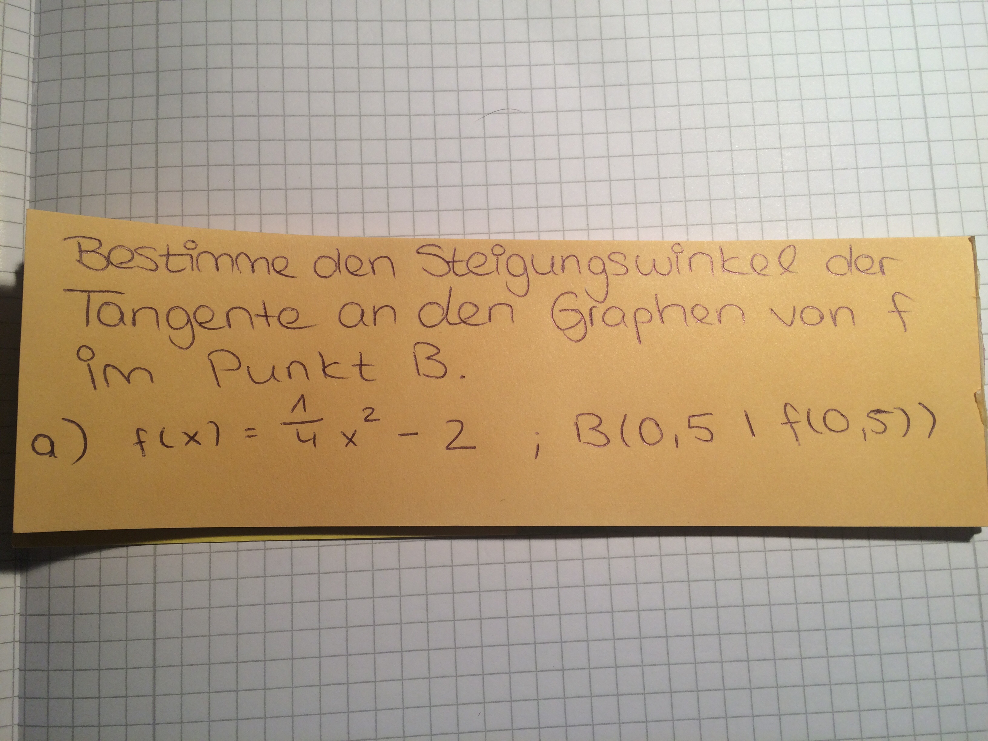 Der Steigungswinkel einer Funktion an einer gegebenen Stelle ist der Steigungswinkel der Tangente an dem Graphen an dieser Stelle Um den Steigungswinkel zu berechnen, benötigst du nicht die Tangentengleichung. Steigungswinkel und Tangente im MatheForum für Schüler und Studenten Antworten nach dem Prinzip Hilfe zur Selbsthilfe Jetzt Deine Frage im Forum stellen!. TangenteNormaleSteigungswinkel Entdecke Materialien Mathematik Animationen;.
