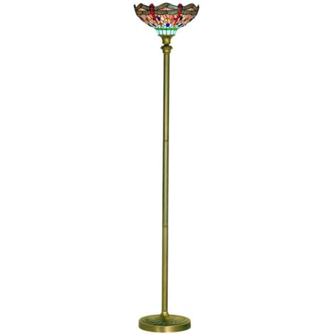 Lampadaire Dragon Fly En Laiton Antique Et Verre Tiffany 1285