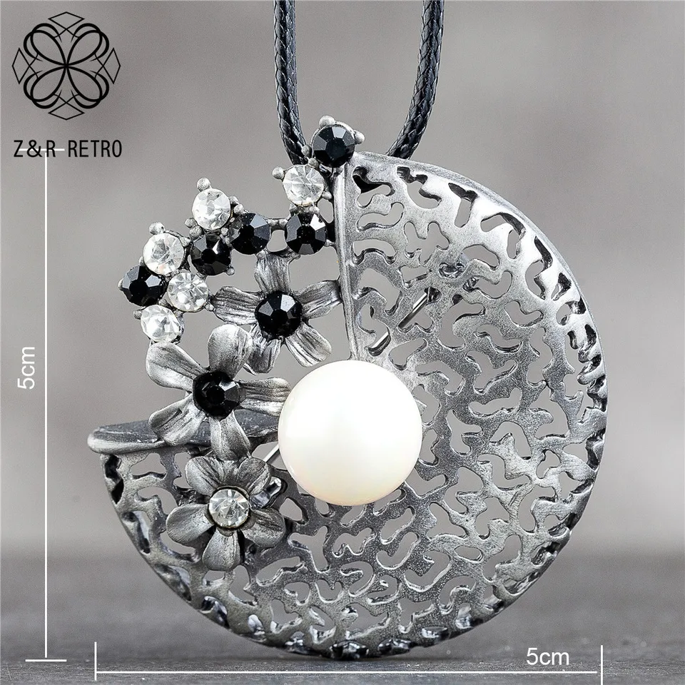 Blume Lange Halskette Fur Frauen Vintage Pflanzen Schmuck Anhanger Farbe Stein Perlen Suspension Seil Ketten Halsband Schmuck Neue Anhanger Halsketten Aliexpress
