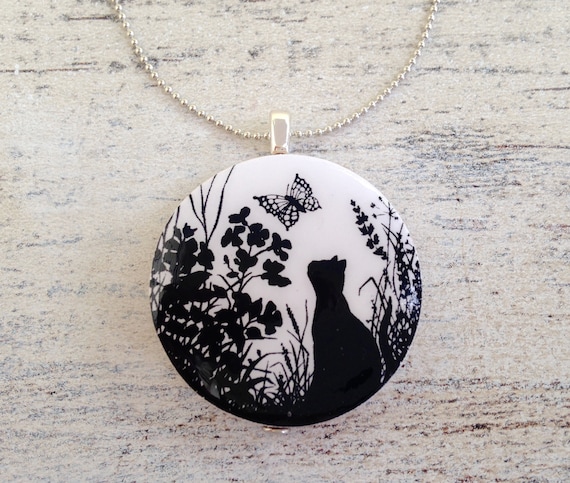 Scherenschnitt Katze Nostalgie Holz Anhanger Kette Marchen Etsy