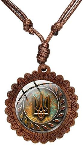 Antike Tryzub Ukraine Insignia Souvenir Halskette Ukrainisches Zeichen Glas Runde Geschnitzte Holz Anhanger Halskette Ukraine Schmuck Amazon De Schmuck