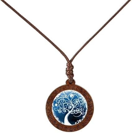 Qprer Frauen Halskette Dunkelblauer Baum Des Lebens Kuppel Glas Holz Anhanger Damen Charming Party Halskette Seil Kette Familie Sweet Anniversary Choker Madchen Schlusselbein Schmuck Amazon De Sport Freizeit