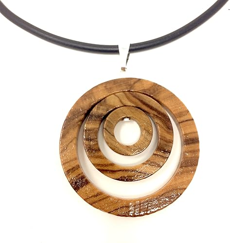 Bagusto Halskette Mit Anhanger Ringe Aus Olivenholz Handgefertigt Auf Mallorca Spanien Holzschmuck Band Aus Kautschuk Amazon De Schmuck