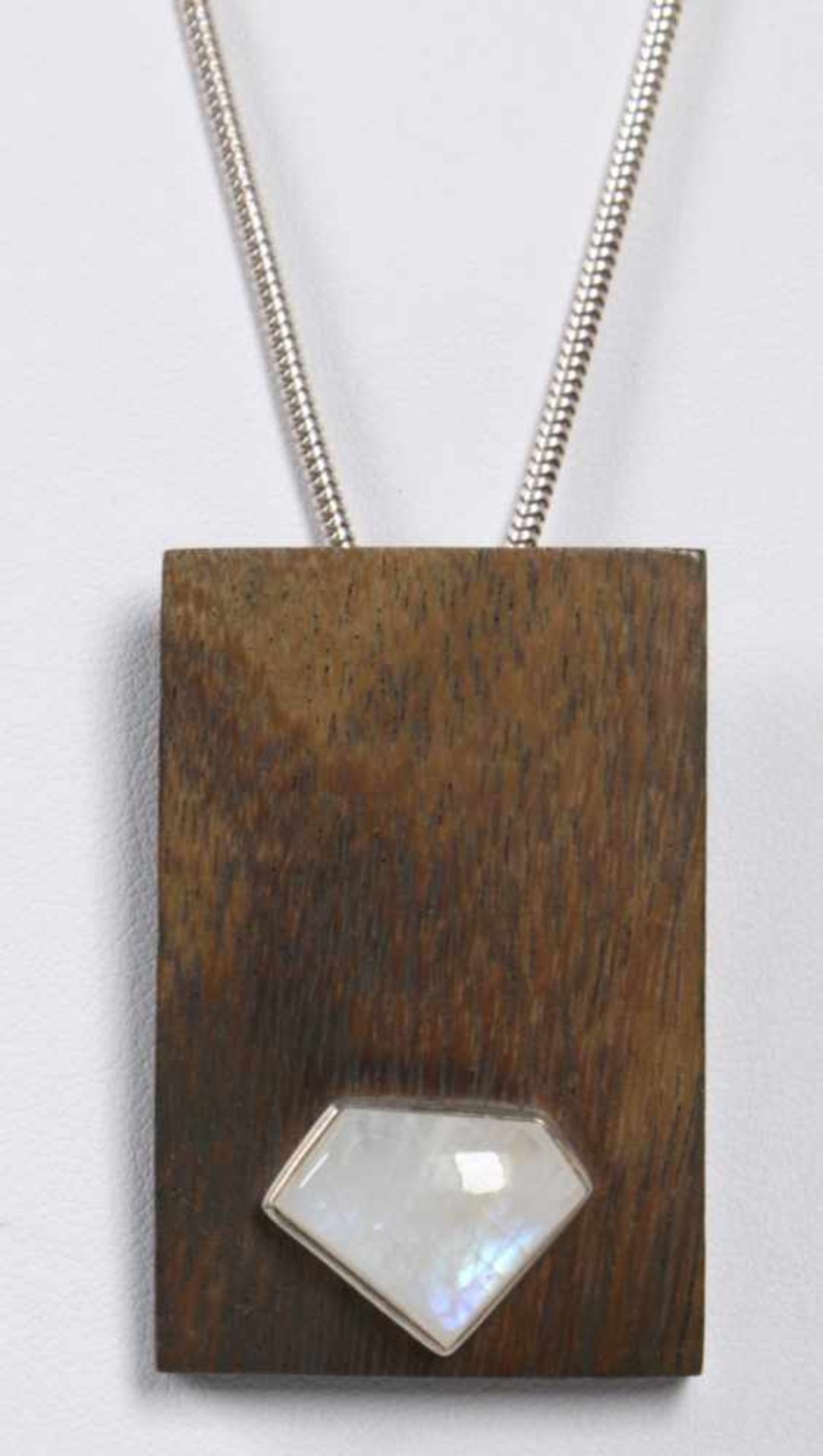 Kette Mit Anhanger Sterling Silber Facon Schlangenhaut Rechteckiger Holzanhanger Besetzt Mit