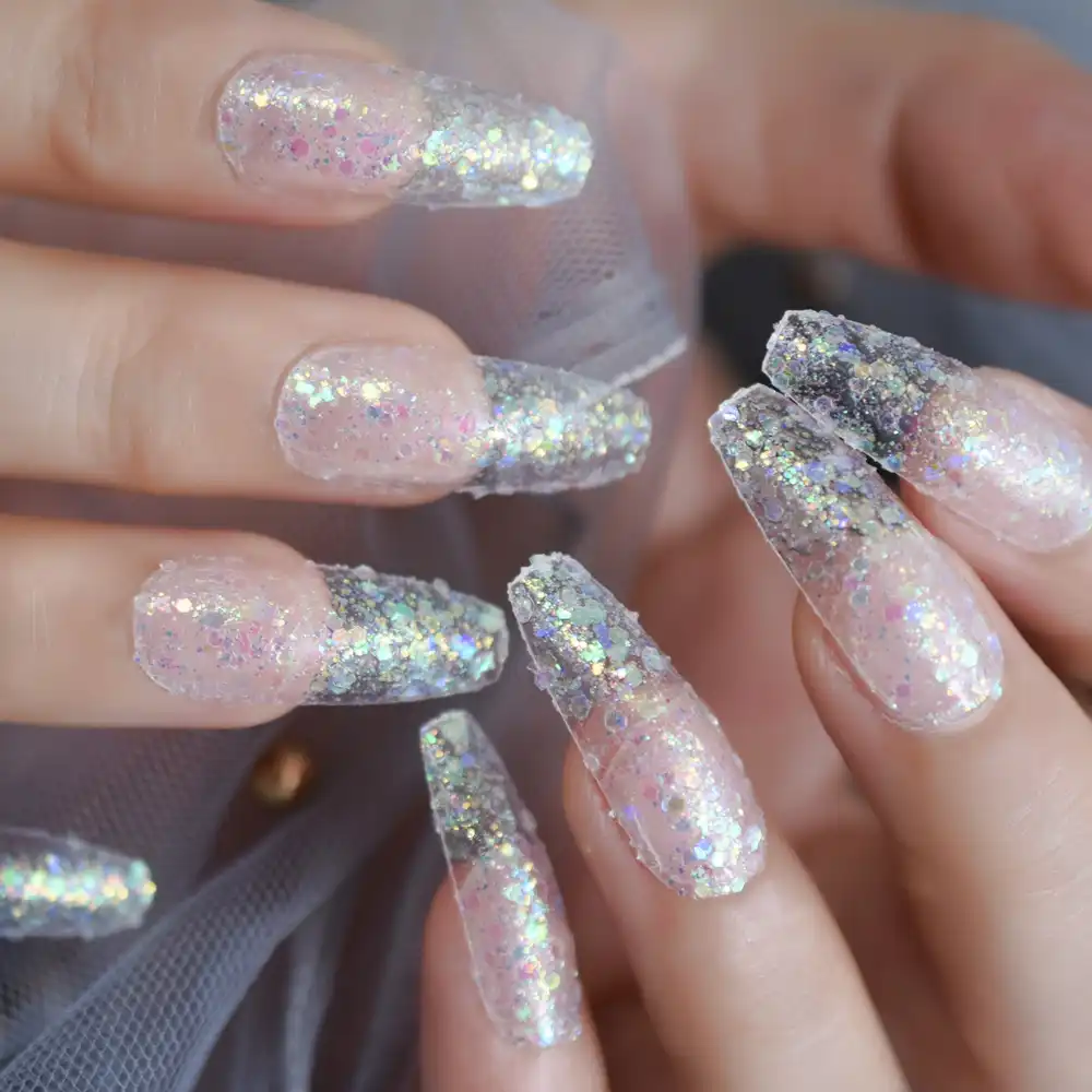 Schillernden Paillette Presse Auf Falsche Nagel Extra Lange Ballerina Sarg Manikure Gefalschte Nagel Spitze lichen Buro Salon Finger Leicht Tragen Falsche Nagel Aliexpress