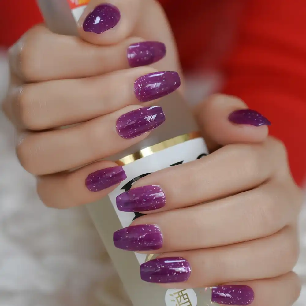 Gnade Lila Gelee Ballerina Nagel Gefullt Mit Glitter Kunstliche Fingernagel Medium Sarg Kits 24 Teile Beutel Falsche Nagel Aliexpress