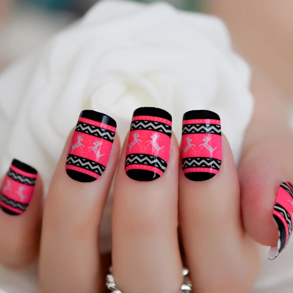 Frohe Weihnachten Nail Art Dekoration Rose Red Weihnachten Deer Gefalschte Nagel Medium Platz Entworfen Nagel Tipps In Box 24 Falsche Nagel Aliexpress