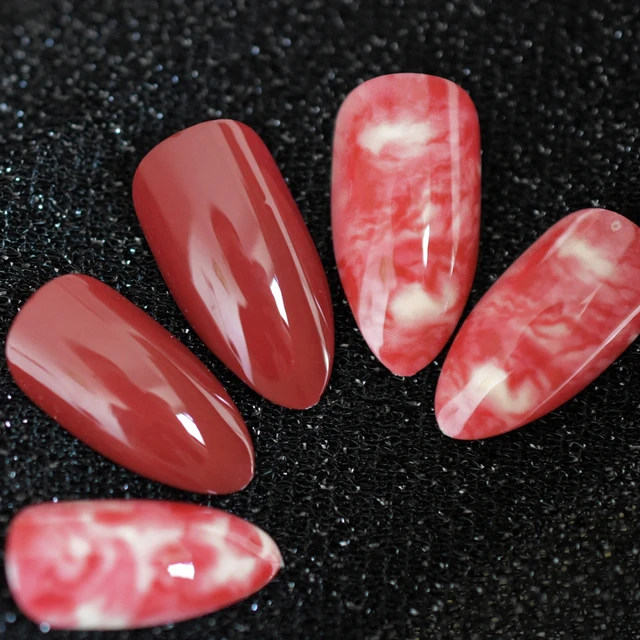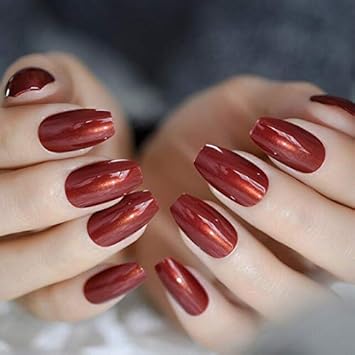 Plzjmm Kunstliche Nagel Gelabdeckung Ballerina Nails Shimmer Deep Red Kunstnagel Medium Sarg Nail Art Tips Amazon De Beauty