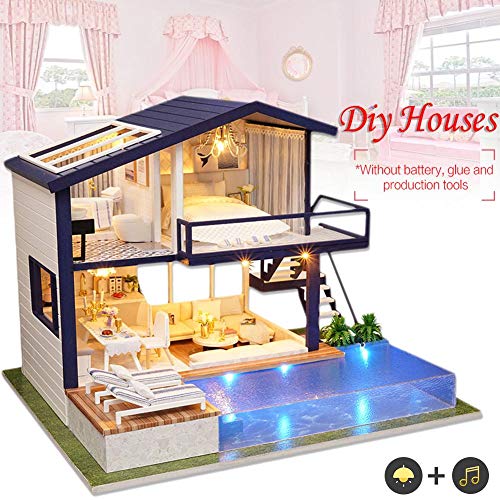 Hearthrousy Diy Puppenhaus Miniatur Haus Selber Bauen Zum Basteln Zubehor Holz Lernspielzeug Spielzeug Kinder 3d Liebe Meer Villa Miniatur Aus Holz Mit Musikwerk Ohne Staubschutz Spielzeug Minipuppen Zubehor