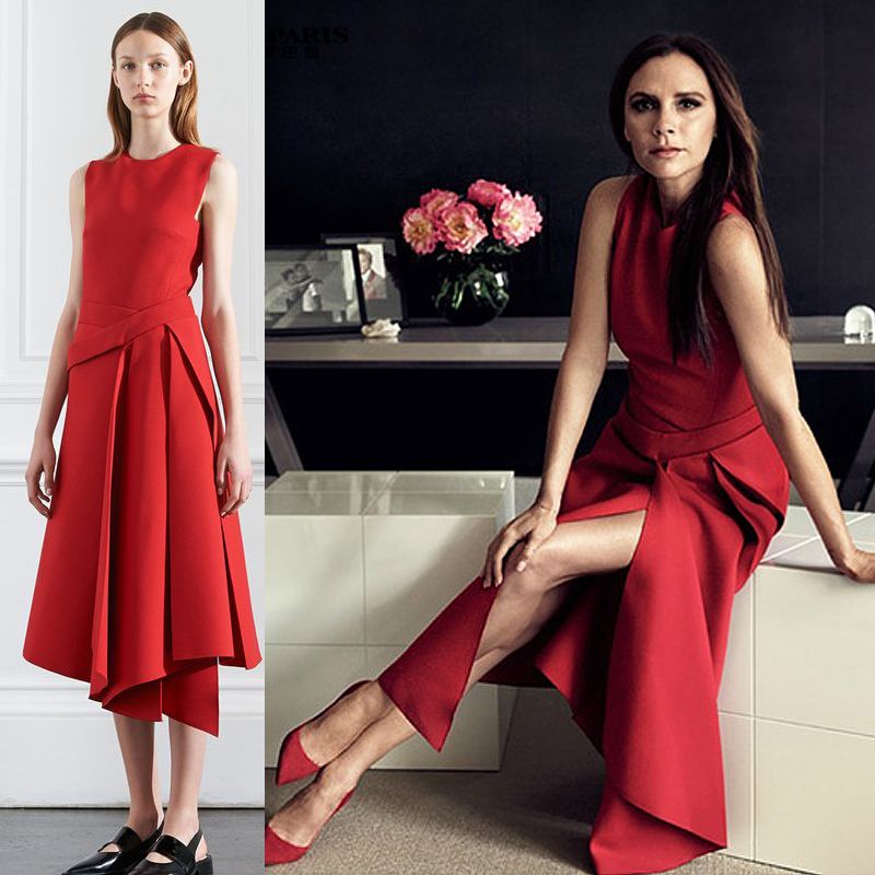 Grosshandel Neue Europaische Star Victoria Beckham Rot Langes Kleid O Ansatz Doppelseiten Baumwolle Unregelmassige Split Armelloses Kleid Schwarz Von Xirizhi1 33 13 Auf De Dhgate Com Dhgate