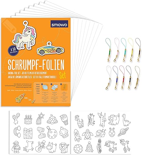 Smowo Schrumpffolien Set Mit Schlusselanhanger 10 Stuck Schrumpfende Plastikfolie Bastelset Mit Motiven Matt Transparent Amazon De Kuche Haushalt