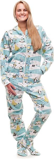 Kajamaz Weihnachtsmorgen Schlafanzug Mit Fusslingen Fur Erwachsene Strampler Fur Erwachsene Weiss Blau Grau Grun L Amazon De Bekleidung