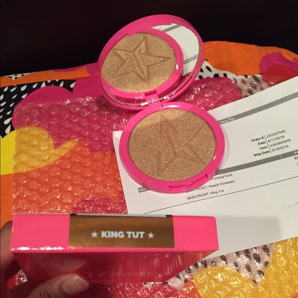 Description An incredibly pigmented highlight ideal for creating an eyecatching luminous finish Created to stand out as much as the creator himself, the Jeffree Star Skin Frosts are perfect for producing a truly unique finish The lightweight, super blendable powder glides effortlessly onto the face, body and eyes for a truly glowing look Pressed into a large, pink, mirrored pan, the innovative formula is sure to become one of the Holy Grail products you can't live without!. Jeffree Star Cosmetics King Tut Skin Frost Highlighter Shipped with USPS First Class Seller assumes all responsibility for this listing Shipping and handling This item will ship to United States, but the seller has not specified shipping options. An incredibly pigmented highlight ideal for creating an eyecatching luminous finish Created to stand out as much as the creator himself, the Jeffree Star Skin Frosts are perfect for producing a truly unique finish The lightweight, super blendable powder glides effortlessly onto the face, body and eyes for a truly glowing look Pressed into a large, pink, mirrored pan, the innovative formula.