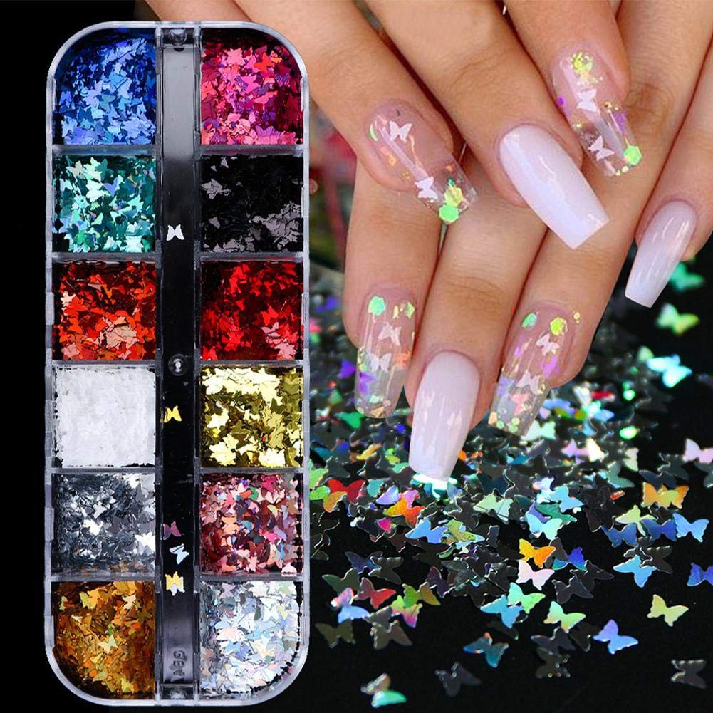12 Stile 3d Schmetterling Form Nagel Pailletten Holographic Nail Art Flakes Holographic Sparkly Glitter Folienblatter Mixed Paillettes Manikure Nageldekoration Diy Gesicht Augen Korper Make Up Amazon De Beauty