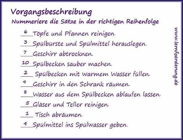 Teil 4 Vorgangsbeschreibung 1 Beschreibe den Vorgang so genau wie möglich!. Re Deutschunterricht /Klassenarbeit Vorgangsbeschreibung Antwort von Carmar am , 1038 Uhr In der Grundschule wollte die Lehrerin, dass die Eltern die. Aussagen über eine Vorgangsbeschreibung müssen als richtig oder falsch erkannt werden Ich benutze diese Aufgabe als ersten Teil der Klassenarbeit, bevor Schüler ihre eigene Vorgangsbeschreibung verfassen 1 Seite, zur Verfügung gestellt von jinges am Mehr von jinges.