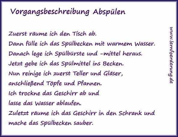 Materialien für die Grundschule Klasse 1 Klasse 2 Klasse 3 Klasse 4 Klasse 1 Deutsch 6 Mathematik 71 Sachkunde 5. Klassenarbeit Vorgangsbeschreibung veröffentlicht am Montag, auf 4teachersde Bildungspolitik Bildungswesen Brandenburg Bremen Deutsch Deutsch lernen Deutsch lernen B2 Deutsch lernen C1 Deutsch lernen C2 Grundschule Hamburg Haupteintrag Hauptvorstand Hessen Kinderbuch Lernen Mathematik MecklenburgVorpommern Niedersachsen. Die Vorgangsbeschreibung beschreibt einen Vorgang, der jederzeit wiederholt werden kann Deshalb wählt man für die Beschreibung die Gegenwartsform Die Sprache muss klar, genau, sachlich und leicht verständlich sein Gefühle, wörtliche Rede oder persönliche Meinungen haben in der Vorgangsbeschreibung keinen Platz.