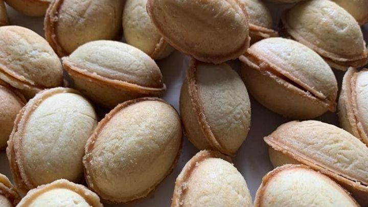 Gebäck "Russische Oreschki" mit Kondensmilch Füllung 0g Oreschki Mürbeteignüsschen mit Karamellfüllung;.