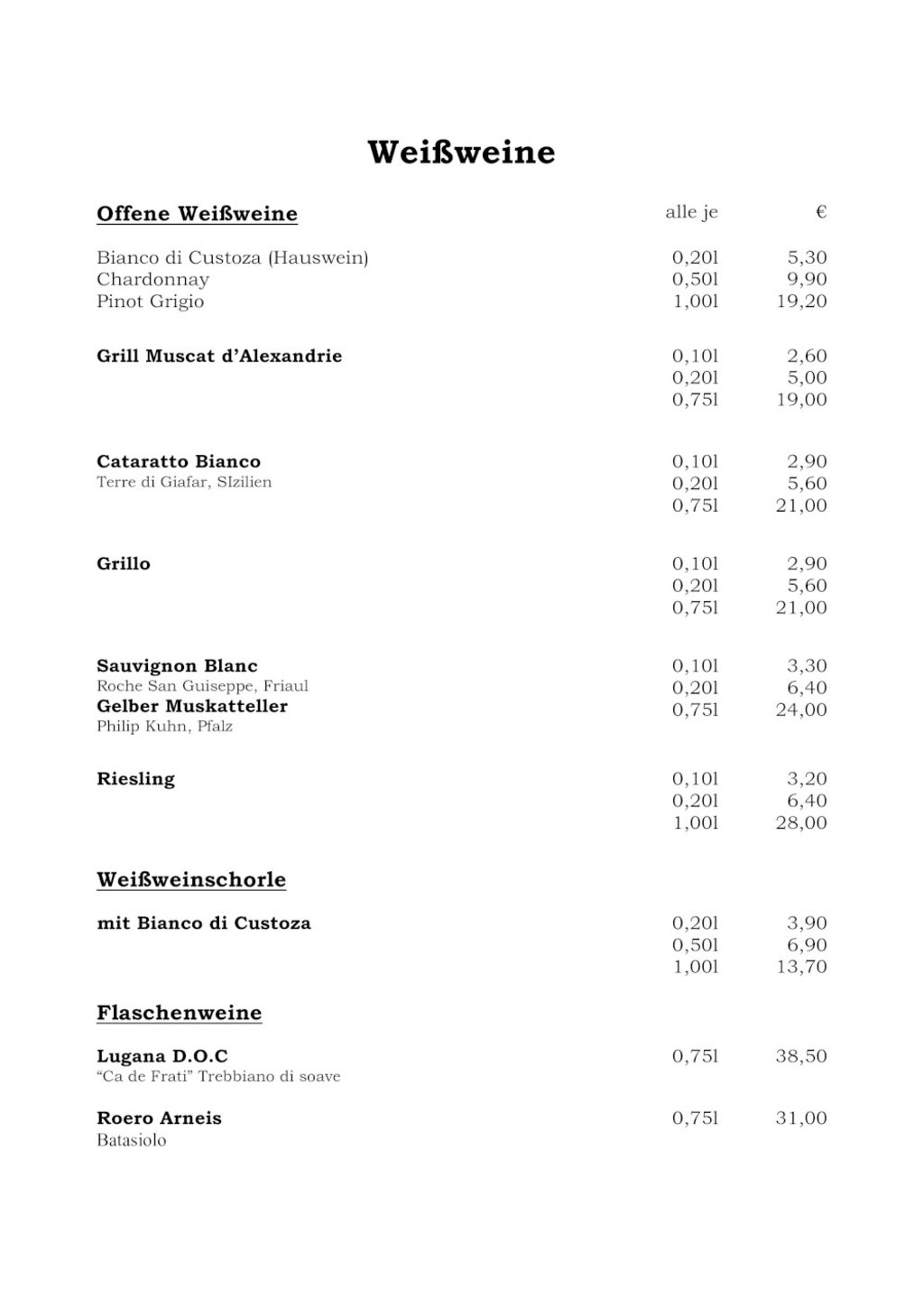 Unsere Getränkekarte In unserem Ristorante Pizzeria Tore in Buchloe können Sie nicht nur in einer gemütlichen Atmosphäre speisen, sondern auch aus einer großen Auswahl an Getränken wählen Wir führen verschiedene Rot und Weißweinsorten aus diversen italienischen Weinanbaugebieten. Wenn Sie Ihre Getränkekarte optimieren, können Sie damit Ihren Umsatz erhöhen Von der Getränkeauswahl bis zur Gestaltung erfahren Sie hier alles, was Sie wissen müssen, um das Beste aus Ihrer Karte zu machen So gehören in einem italienischen Restaurant auch italienische Weine auf die Karte, während sich in einem spanischen. Restaurant Villaggio, Marktgasse 15, 6040 Baar Pizza Pasta Steak.