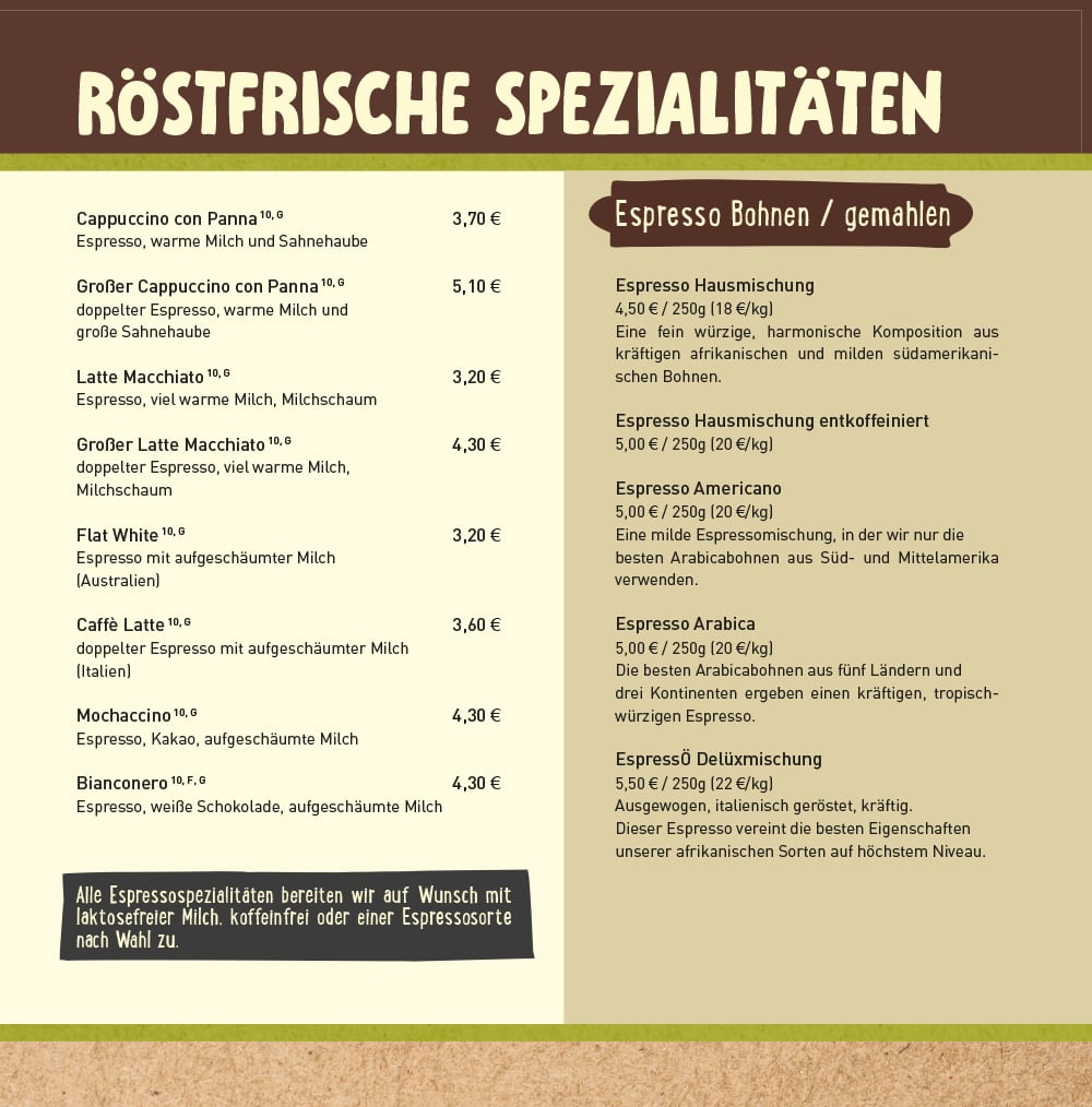 Getrankekarte Kaffeerosterei Kaffee Shop Markt 11