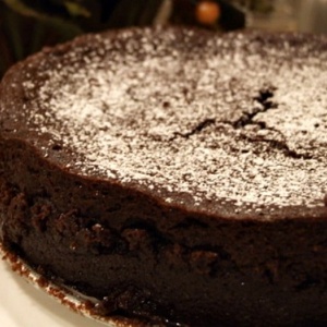 Invert the torte onto a baking sheet and remove the pan bottom;. Use a thinbladed knife to help separate the torte and pan bottom if necessary Invert the torte again onto a serving plate and remove the plastic wrap Just before serving, put the confectioners’ sugar and cinnamon in a small fine strainer and sift over the top of the torte. Whisk together flour, 1/2 cup cocoa powder, espresso powder, baking soda, and baking powder in a bowl to blend Gradually add to wet mixture;.