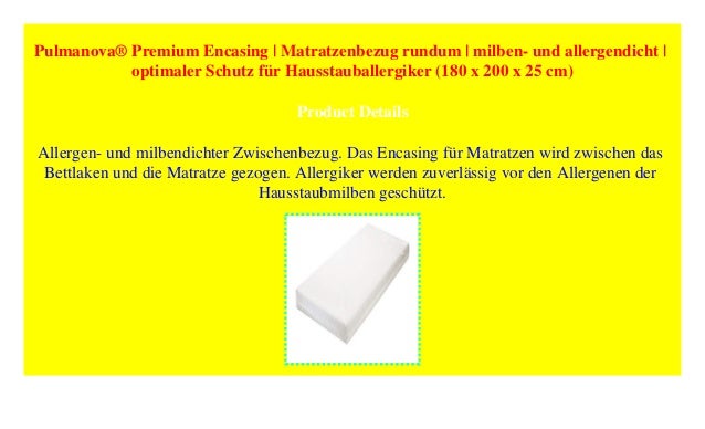 "Encasing" Milbendichter Matratzenbezug zeigt wenig Wirkung Autor Monika Preuk, Medizinautorin Letzte Aktualisierung 26 Februar 15 Milbendichte Matratzenbezüge, sogenannte Encasings, sollen Hausstauballergie lindern, indem sie die Milben innerhalb von Textilien einsperren Stimmt leider nicht, zeigen nun mehrere Studien. Der Bezug verhindert, dass sich Milben in der Matratze ansiedeln können Schon vorhandene Milben erhalten durch das dichte Material keine Nahrung mehr, was die Milbenzahl reduzieren kann Ein vollständig von Milben befreites Bett können die Bezüge allerdings nicht erreichen. Allergiker Matratzenbezug – Gesunder Schlaf mit einem Encasing Die Allergie gegen Hausstaubmilben ist sehr weit verbreitet In diesem Falle ist ihre Häufigkeit für die Betroffenen eine gewisse Hilfe, da es deswegen inzwischen eine ganze Reihe Produkte gibt, die bei HausstaubAllergikern für Linderung und Erleichterung der Symptome sorgen.