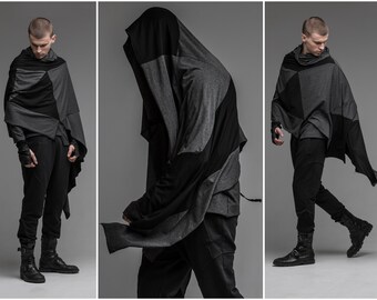 Hooded Cloak Casual Jacket Sci Fi Clothing Kimono Cardigan Burning Man Costume Post Apocalyptic Men Festival