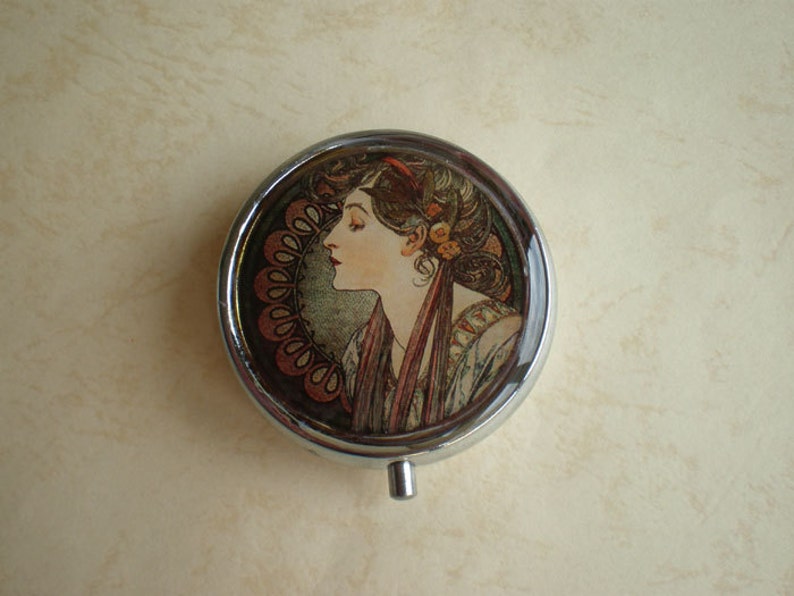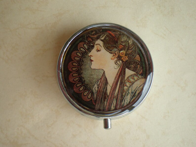 Mucha Art Pill Box Art Nouveau Pill Case Pill Container Etsy