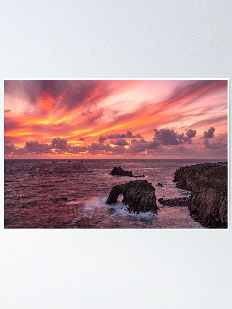Sunset Set At Lands End Cornwall Red Sky At Night Poster By Kathleenjean Redbubble