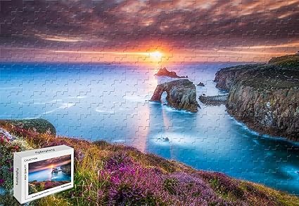 Amazon Com 500 Piece Jigsaw Puzzle Cornish Coastal Sunset Scenery At Lands End Wooden Mural Home Decoration In A Box Famous Paintings 6 X 15 1 Inch Toys Games