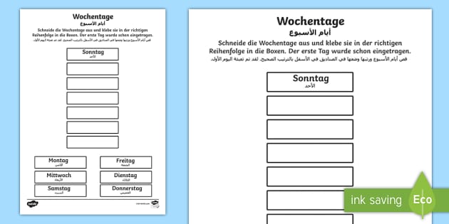 Free Deutsch Arabisches Wochentage Arbeitsblatt
