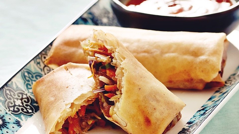 Unser beliebtes Rezept für Vegetarische Frühlingsrollen und mehr als weitere kostenlose Rezepte auf LECKERde. Genial an Frühlingsrollen ist, A, dass ihr und die Kids am Mittagstisch wieder mal dem Fingerfood frönen dürft, B, dass sie sich auch super einfrieren lassen und C, dass ihr mit den Zutaten sehr einfallsreich sein könnt Sie beinhalten meistens Gemüse als Füllung Allerdings habe ich auch viele Rezepte mit Fleischfüllung gesehen. Diese asiatischen Frühlingsrollen mit Hackfleischfüllung sind eine gesunder Snack oder eine ideale Vorspeise Das Fleisch punktet mit viel muskelstärkendem Eiweiß und blutbildendem Eisen Die Sauce mit der Paprika und der Chilischote liefern viele Scharfstoffe, die den Stoffwechsel ankurbeln und entzündungshemmend wirken.