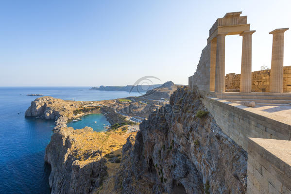 View Of St Pauls Bay Lindos Village And Mediterranean Sea From Acropolis Of Lindos Rhodes Greece Stock Photo C Luboskova Gmail Com
