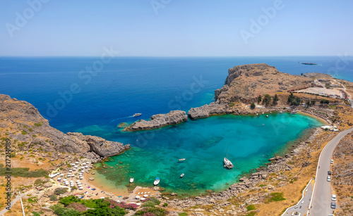Aerial Birds Eye View Drone Photo Saint Paul Bay Near Village Lindos Rhodes Island Dodecanese Greece Sunny Panorama With Lagoon And Clear Blue Water Famous Tourist Destination In South Europe Buy