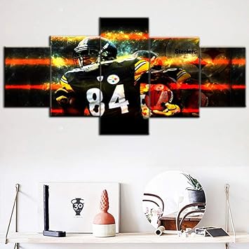 Native American Decor Pittsburgh Steelers Paintings Nfl Pictures Antonio Tavaris Brown Sr Wall Art 5 Piece Canvas Modern Artwork Giclee Home Decor For Living Room Framed Ready To Hang 50 Wx24 H Amazon In Home