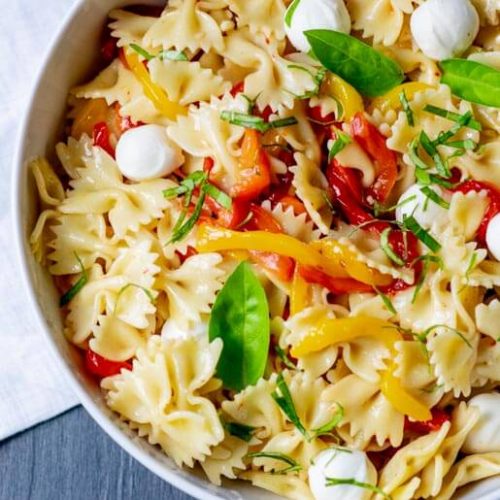 Nudelsalat Mit Gegrillter Paprika Und Mozzarella Kuchengeschichten