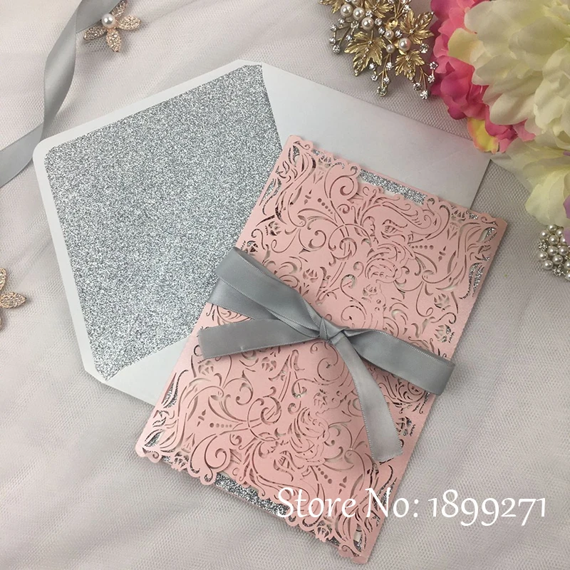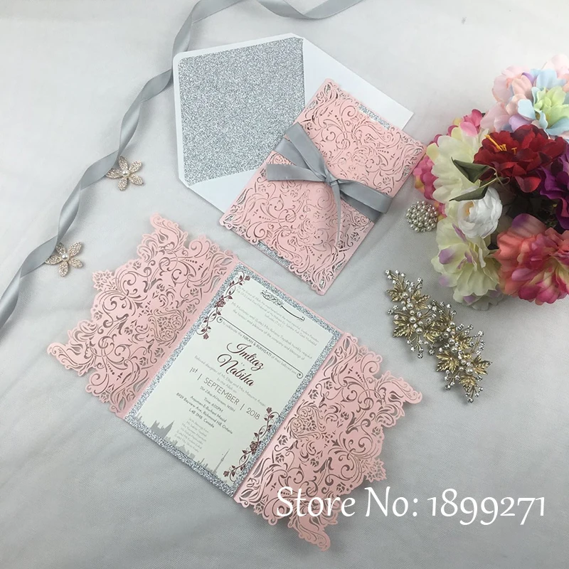 1 Volle Set Blume Design Licht Rosa Perle Hochzeit Einladung Karte Mit Gliter Papier Recycelt Arabisch Hochzeit Begrussen Danke Karte Invitation Greeting Card Greeting Cardswholesale Greeting Cards Aliexpress