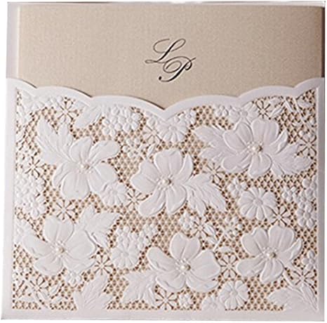Amazon De Laser Geschnitten Blume Und Perlen Hochzeit Einladungen 15 Stuck