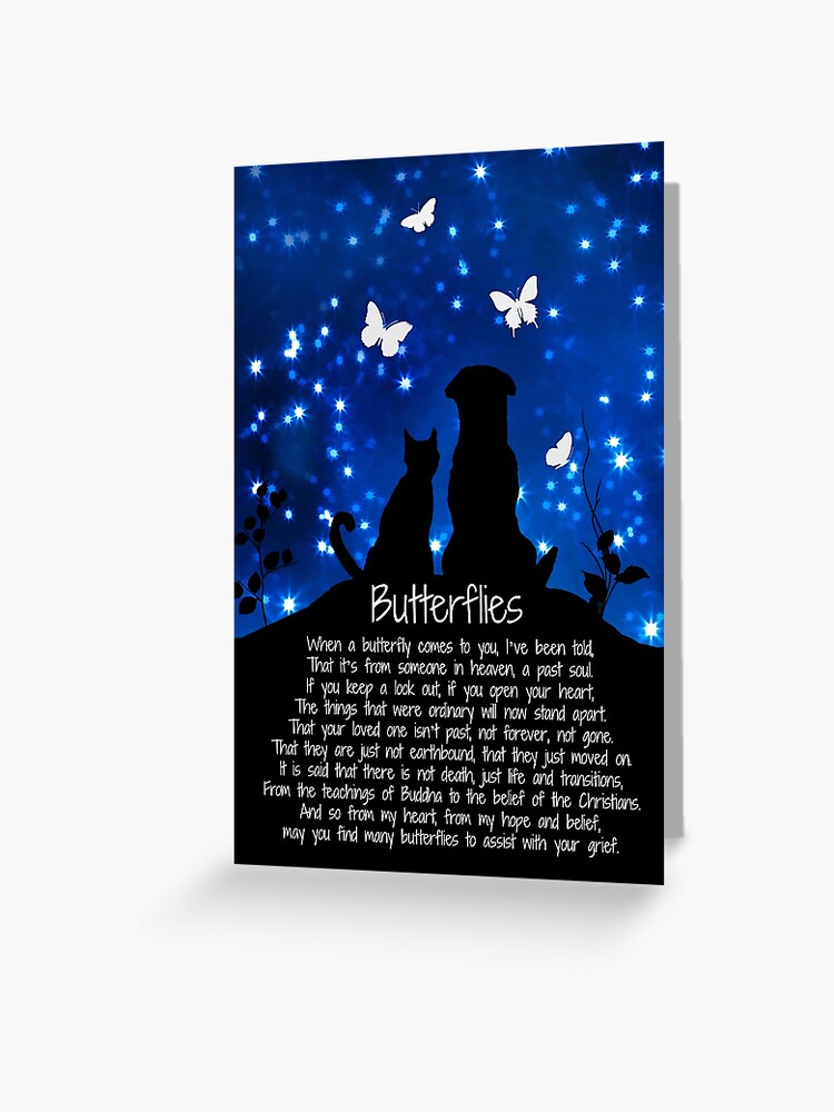 Sympathie Schmetterlinge Katze Und Hund Spirituelle Trauer Grusskarte Von Lazyl Redbubble